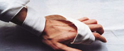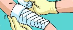 人字形包扎用于能彎曲的關(guān)節(jié),如肘部、膝部,還有手和腳跟,方法如下: ·先將繃帶在患者肢體關(guān)節(jié)中央處纏繞一圈做固定,然后繞一圈向下,再繞一圈向上,反復(fù)向下、向...